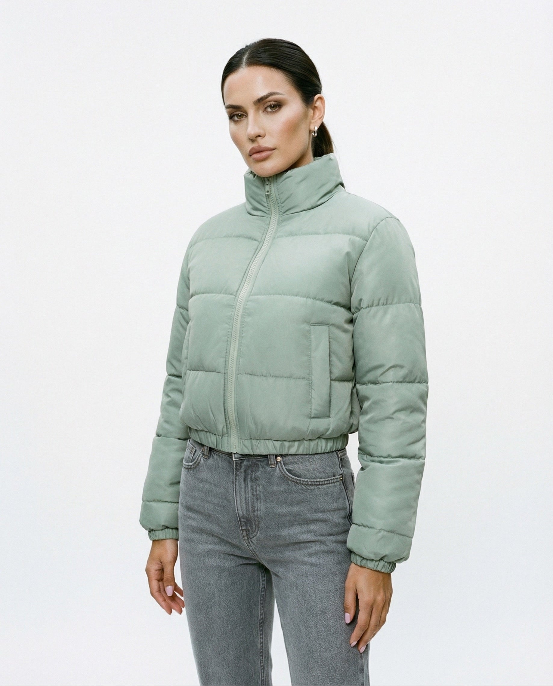 Introducing our Mercer Cropped Puffer Jacket, designed for the fashion-conscious woman who refuses to sacrifice warmth for style. The water-repelling fabric ensures you stay dry in any weather, while the color-matched zipper adds a touch of elegance to the design. Cinched wrists and waist provide a flattering fit, and the mandarin collar adds a touch of sophistication. Two real pockets on the front offer convenient storage for your essentials. This jacket is perfect for those chilly days, with wind defense technology to keep you warm.