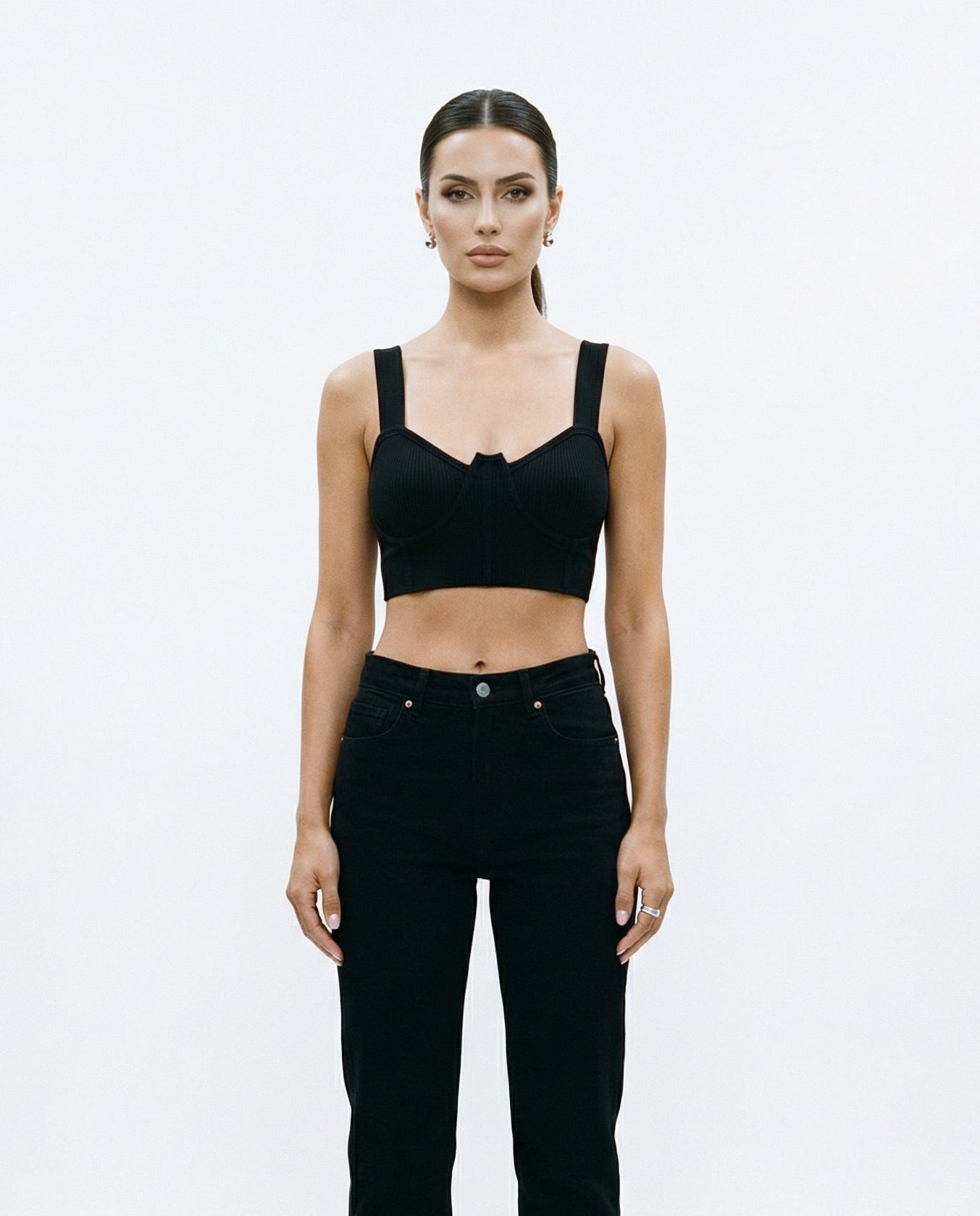 This stylish Vail Contour Bustier Brami is the perfect addition to any wardrobe! It features an underwire design and ultra stretch material, providing maximum comfort and support. The thick straps and ribbed detailing give this piece a modern and flattering look. This luxurious brami is perfect for creating a chic, layered look with your favorite tops and dresses.