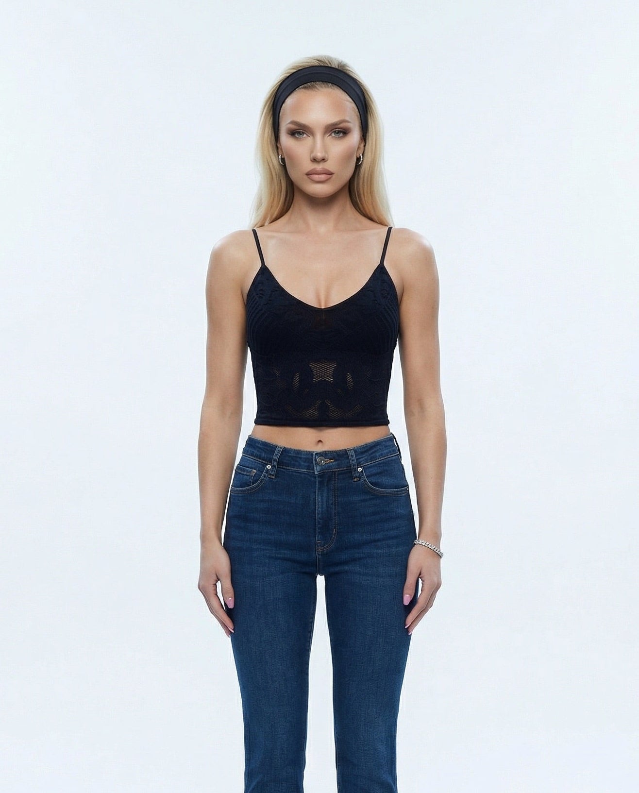 Unleash your inner risk-taker with our Gria Lace Crop Top! Featuring a pleated trim, etched chest design, and adjustable straps, this top is perfect for the daring and edgy fashionista. The see-through lace bodice adds a hint of femininity to balance out the boldness. Take on the day in style!